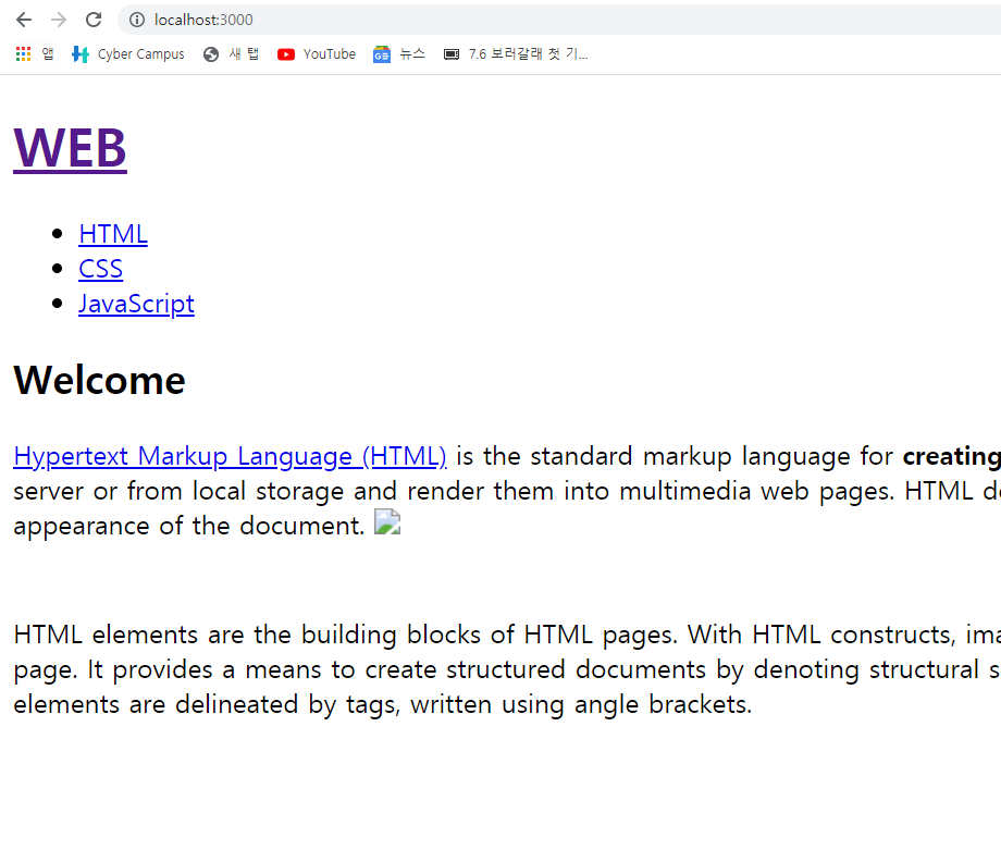 위 사진에서 template란 변수를 선언해주고 html로 하나의 페이지를 만들어줍니다. 여기서 주의 깊게 봐야할건