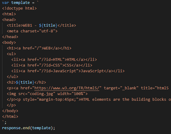 response.end()안에 template를 넣어서 template홈페이지가 쿼리값이 바뀔 때마다 새롭게 적용될 수 있도록 선언해준것입니다.